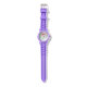 I only have one complaint. I ordered the watch with clear case and strap, and what was sent was white case and strap. I'm going to keep it because 1) it looks very nice in white, and 2) it would take too long to get a replacement made and sent in time for my occasion. Aside from the mix up with the color, the watch does look very good in white. The purple dial is actually sparkly which did not show in the online images. That was a nice surprise. If you like Swatch watches this is very similar to those. It's 33.6mm in diameter, 10.5mm thick, and 40.6mm lug to lug. Stainless steel case back says 3ATM/30m WR, so no swimming or showering or submerging this one. If you like Woodstock, this is a great choice.