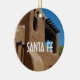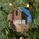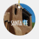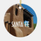 Santa Fe New Mexico memento ornament with a photo of an adobe building and Santa Fe in fun southwestern style typography. Celebrate your memories of Santa Fe. Choose your ornament shape.