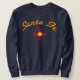 Great t-shirt featuring Santa Fe in its unique Santa fe font with the flag of New Mexico.