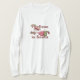 I love this shirt. I had written to the artist asking her if this picture was available on a shirt, and she wrote me back telling me where I could find the shirt. These shirts can be custom made to have a different saying. I loved this saying and went with it. The artist wrote me back later to tell me that she had seen my order go through. How's that for service? Pretty special. It's just as displayed. Perfect!