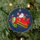 Cute Christmas Santa flying an airplane with a sack full of gifts and the propellor has red and white stripes ornament.
