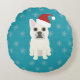 Santa Frenchie, Snowflakes Blue Round Pillow