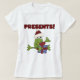 Santa Frog holiday T-shirts, sweatshirts, tote bags, cards, stickers, mugs, magnets, keychains, and other holiday apparel and gifts featuring a frog in a Santa hat, presents, and text that reads "Presents!".