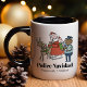 It’s Christmas Eve and Santa is in a hurry to deliver toys to good girls and boys. But even Santa must obey the speed limit. Santa has broken the law and he’s been pulled over by the man in blue. Will he get a ticket or just a warning and a “merry Christmas” from the officer so he can be on his way? This cute coffee mug features an illustration of Santa and his reindeer getting a speeding ticket, an elf, delicate falling snow, and two customizable text areas that say, “Police Navidad” and “Prospero Ano Y Felicidad.” Modify the text to create a unique gift for police and law enforcement officers. Fill it with a note pad and a pen so your law enforcement officer can dispense tickets when you’ve been naughty.
