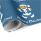 Wrapping Paper with a smiling gingerbread Santa, in a blue suit, and the words “Merry Christmas”. The words can be customized as you like. Merry Christmas!