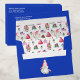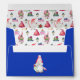 This holiday address envelope comes in blue but can be customized to any available color, including white. The inside of the envelope is decorated with festive patterns such as gnomes, presents, holly, candy canes, Christmas trees, and Santa's bag. On the outside back of the envelope, there is an image of a gnome Santa Claus. You can personalize the envelope with your own address, and even edit it for more customization options.