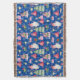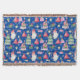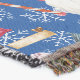 Santa Gnome for Holidays Pattern Blue Background Throw Blanket. Features a blue background pattern with gnomes, presents, holly, candy canes, Christmas trees, and Santa's bag. Personalize this to tile your own image.