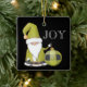 Cute Santa Gnome in Green with green ornament and JOY type on the front and Name and Year on the back, ceramic ornament.