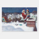 Santa Claus on the rooftop with his reindeer, preparing to deliver books for Christmas. Popular vintage painting by N.C. Wyeth.