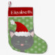 Create a personalized stocking for your cat or a cat lover. This design consists of a cute gray cat wearing a Santa hat and Christmas colors with the ability to customize to your needs. Original design by Night Owl's Menagerie, 2018.