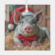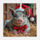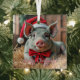 Santa Gray Pig Glass Ornament