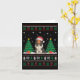 Santa Hat Bearded Collie Dog Xmas Tree Lights Ugly Card