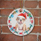 Santa Hat Bulldog Puppy Bone Wreath Ceramic Ornament