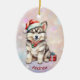 Santa Hat Husky Puppy Grandson Ceramic Ornament