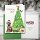 Santa Hat Mastiff, Bird and Christmas Tree Holiday Card