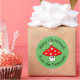 A cartoon mushroom with a red cap like a Santa hat wishes a "Merry Christmush" from the family.