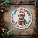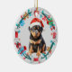 Santa Hat Rottweiler Puppy Bone Wreath Ceramic Ornament