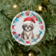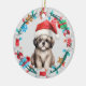 Santa Hat Shih Tzu Puppy Bone Wreath Ceramic Ornament