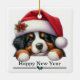 Santa Hat Winking Bernese Mountain Puppy Christmas Ceramic Ornament