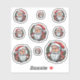 Sticker with the head of Santa Claus and a beautiful Christmas wreath. Digitally created, in colorful cartoon style.