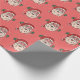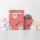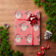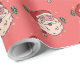 Cute Santa Claus in his traditional hat Christmas holiday wrapping paper design that features mistletoes and snowflakes on a subdued red background.