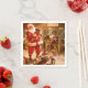 Charming vintage paper napkins featuring Santa Claus and his elves in the reindeer barn feeding little kittens.