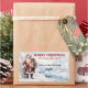 Sticker featuring a colorful vintage Santa with festive packages in a winter wonderland. Great for personalized Christmas gifts. If you prefer to write the names on the stickers yourself, it is recommended to choose the matte version and delete the respective template texts.