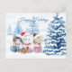 Santa kittens, pine trees Christmas Postcard