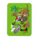 Santa koala gives presents to emu, goanna, echidna, kangaroo and cockatoo near a gum tree