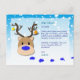 A blue postcard for kids that features falling snow, a reindeer and a naughty elf. Send your child this personalized letter from Santa, there is room on the back for their Christmas list. The name, message and greetings can all be customized. For boys big and small.