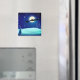 This magnet has an artsy picture of Santa flying through the sky with his reindeer.