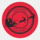 This classic round sticker features an illustration of Santa and his sleigh pulled by reindeer. It says "Santa Mail" above and "North Pole" below. The red background color can be changed to any color you'd like!