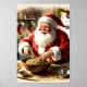 This Christmas kitchen wall art features Santa Claus in a charming vintage-style kitchen, preparing a traditional holiday fruitcake. Santa is shown carefully mixing a bowl filled with rich ingredients like dried fruits, nuts, and spices, with flour dusting his apron. The kitchen is adorned with rustic shelves holding old-fashioned baking tins, glass jars of spices, and a bowl of festive red and green candied fruits. Santa’s focused expression and jolly demeanor reflect the warmth and joy of holiday baking. This artwork beautifully captures the nostalgic essence of Christmas, making it a delightful addition to any holiday decor.