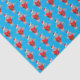 Tissue paper with cartoon manatees in Santa outfits on a blue background.
