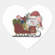 Santa Mouse With Sled Heart Sticker