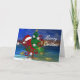 Santa octopus trim a tree Holiday coastal Christmas card from my art. Fun Christmas Holiday cards from my original art designs.