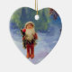 SANTA OF THE GNOMES WITH RED RUBY HEART CERAMIC ORNAMENT