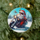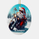 Santa on a Motorcycle in the Snow Ceramic Ornament