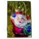 A cool Santa Claus Christmas ornament in a tree against a green background. Copyright © 2014 Fred Ziegler