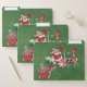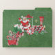 This set of three file folders are dark green with Santa Claus riding a red and white peppermint candy train carrying letters to Santa, candy canes and holly leaves. Train engine has the text Noel.