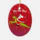 This funny Christmas ornament features Santa Claus Riding a large green praying mantis and the words "Ho Ho Ho!" . The primary colors are red, white and green. If you like unique things, this one's for you!