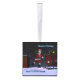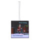 Santa Claus is seen on the roof of a house after delivering presents. His sleigh's red and green navigation lights are reflected on the rooftop snow, and Santa's personal North Pole license plate is visible.Text reading "Season's Greetings" also appears along with a place for your own text.
