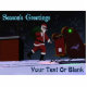 Santa Claus is seen on the roof of a house after delivering presents. His sleigh's red and green navigation lights are reflected on the rooftop snow, and Santa's personal North Pole license plate is visible.Text reading "Season's Greetings" also appears along with a place for your own text.