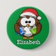 Santa Owl Christmas Stocking Name Tag Button