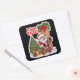 Santa Peeking Door Black Background Square Sticker