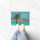 Santa pelican and palm tree Christmas Holiday indoor or outdoor door mat with my art. Fun festive colorful Christmas Holiday home decor rug of pelican in Santa hat with decorated palm tree of Holiday lights. The image is from my original art. Available in several doormat sizes.