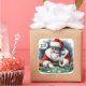 Santa Claus sits at a green casino table, confidently holding playing cards and wearing sunglasses. He is surrounded by colorful poker chips and bottles, embodying a lively holiday gambling atmosphere. Cheerful and relaxed, Santa enjoys the game.
