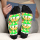 This fun Halloween socks are bright and colorful. The small print is crisp and shows the fun details. The softness of the socks feels nice on my feet and ankles. .