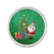 Pretty & Festive Silver Plated Lapel Pin Featuring Santa & Presents Green Faux Glitter Design