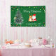 Elegant Christmas banner features a cute Santa with reindeer and Christmas tree, surrounded by colorful string lights on a green background. Personalize it with your name.